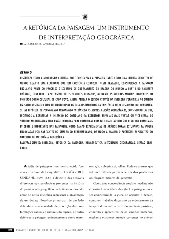 A RETÓRICA DA PAISAGEM: UM INSTRUMENTO DE INTERPRETAÇÃO GEOGRÁFICA