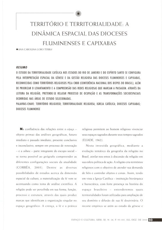 - TERRITÓRIO E TERRITORIALIDADE: A DINÂMICA ESPACIAL DAS DIOCESES FLUMINENSES E CAPIXABAS