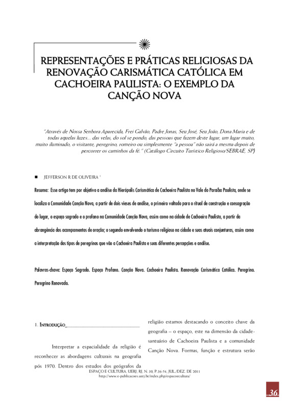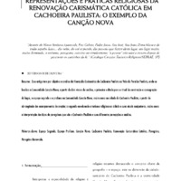 REPRESENTAÇÕES E PRÁTICAS RELIGIOSAS DA RENOVAÇÃO CARISMÁTICA CATÓLICA EM CACHOEIRA PAULISTA: O EXEMPLO DA CANÇÃO NOVA