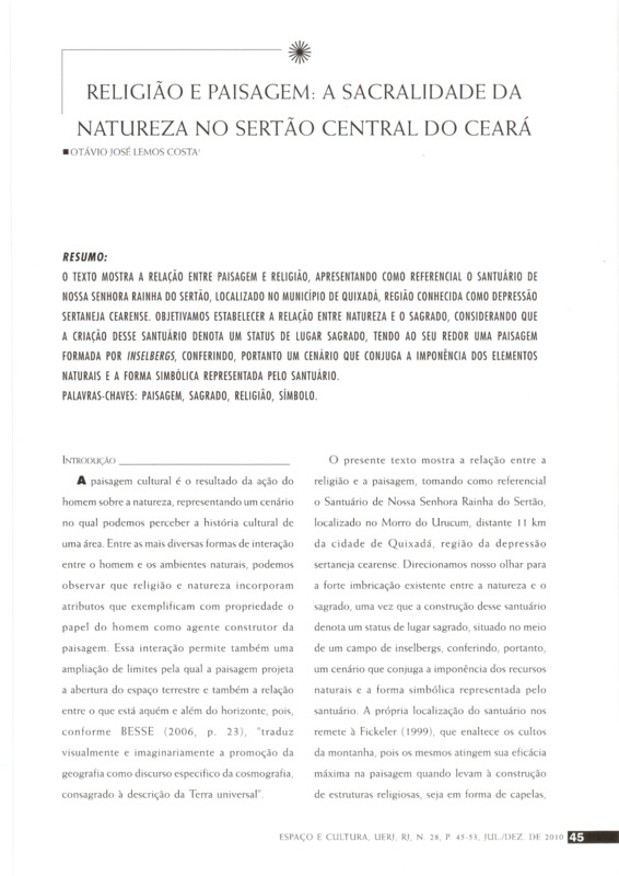 - RELIGIÃO E PAISAGEM: A SACRALIDADE DA NATUREZA NO SERTÃO CENTRAL DO CEARÁ