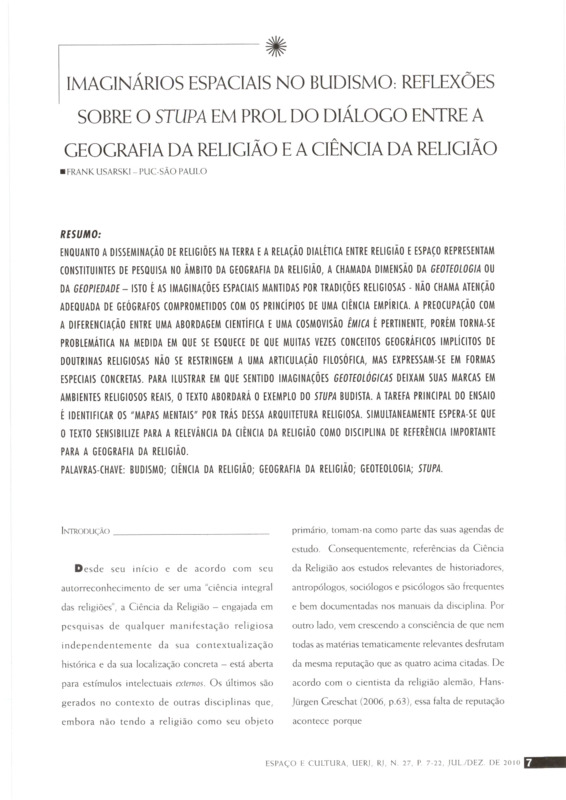 IMAGINÁRIOS ESPACIAIS NO BUDISMO: REFLEXÕES SOBRE O STUPA EM PROL DO DIÁLOGO ENTRE A GEOGRAFIA DA RELIGIÃO E A CIÊNCIA DA RELIGIÃO