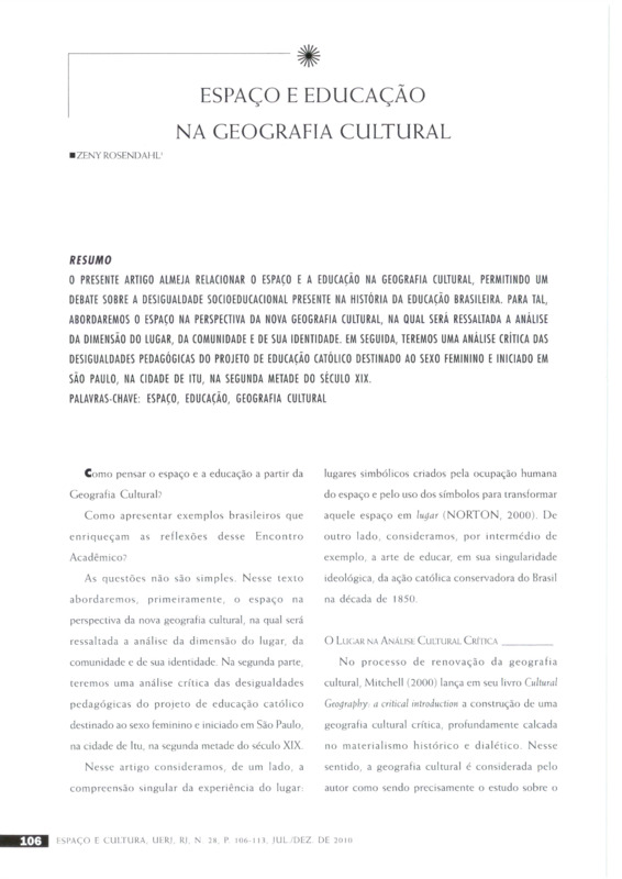- ESPAÇO E EDUCAÇÃO NA GEOGRAFIA CULTURAL