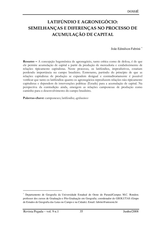 LATIFÚNDIO E AGRONEGÓCIO: SEMELHANÇAS E DIFERENÇAS NO PROCESSO DE ACUMULAÇÃO DE CAPITAL