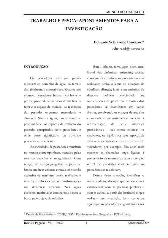 TRABALHO E PESCA: APONTAMENTOS PARA A INVESTIGAÇÃO