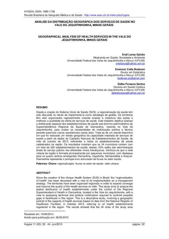 ANÁLISE DA DISTRIBUIÇÃO GEOGRÁFICA DOS SERVIÇOS DE SAÚDE NO VALE DO JEQUITINHONHA, MINAS GERAIS