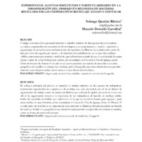 EXPERIÊNCIAS, SEMELHANÇAS E ALGUMAS PARTICULARIDADES NA ORGANIZAÇÃO DO TRABALHO NA CATAÇÃO DE MATERIAIS RECICLÁVEIS NAS COOPERATIVAS DE RECICLAGEM