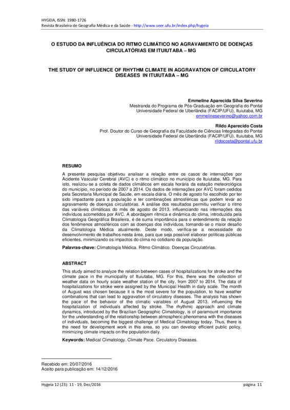 O ESTUDO DA INFLUÊNCIA DO RITMO CLIMÁTICO NO AGRAVAMENTO DE DOENÇAS CIRCULATÓRIAS EM ITUIUTABA – MG