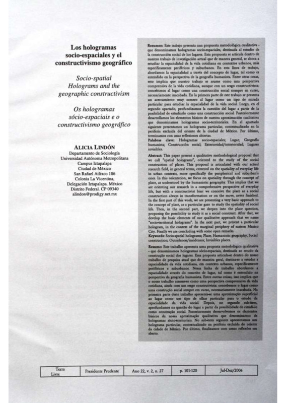 - Los hologramas socio-espacyales y el constructivismo geógrafico