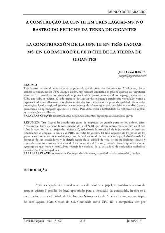 A CONSTRUÇÃO DA UFN III EM TRÊS LAGOAS: NO RASTRO DO FETICHE DA TERRA DE GIGANTES