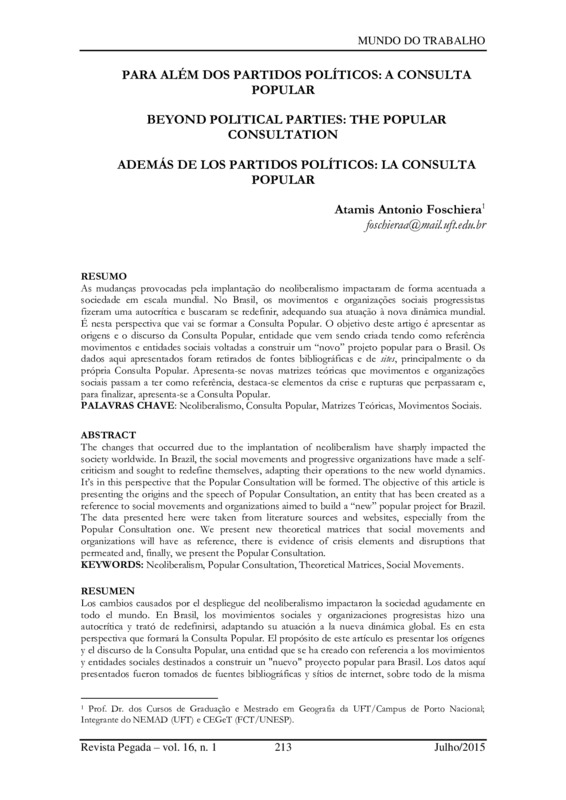 PARA ALÉM DOS PARTIDOS POLÍTICOS: A CONSULTA POPULAR