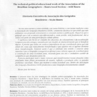 - O TRABALHO TÉCNICO- POLÍTICO-PEDAGÓGICO DA ASSOCIAÇÃO DOS GEÓGRAFOS BRASILEIROS SEÇÃO LOCAL BAURU - AGB/BAURU