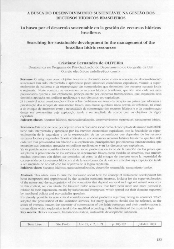 - A BUSCA DO DESENVOLVIMENTO SUSTENTÁVEL NA GESTÃO DOS RECURSOS HÍDRICOS BRASILEIROS
