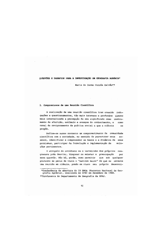 Questões e desafios para a investigação em geografia agrária