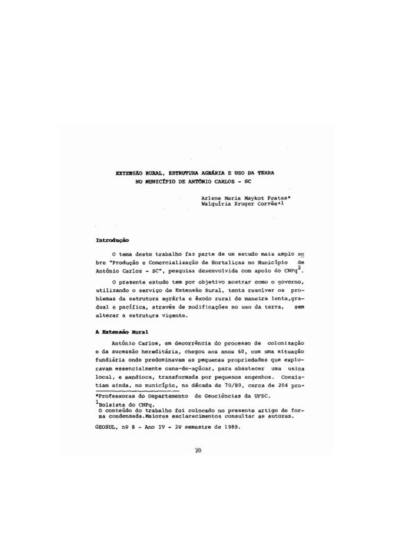 Extensão rural, estrutura agrária e uso da terra no município de Antônio Carlos - SC