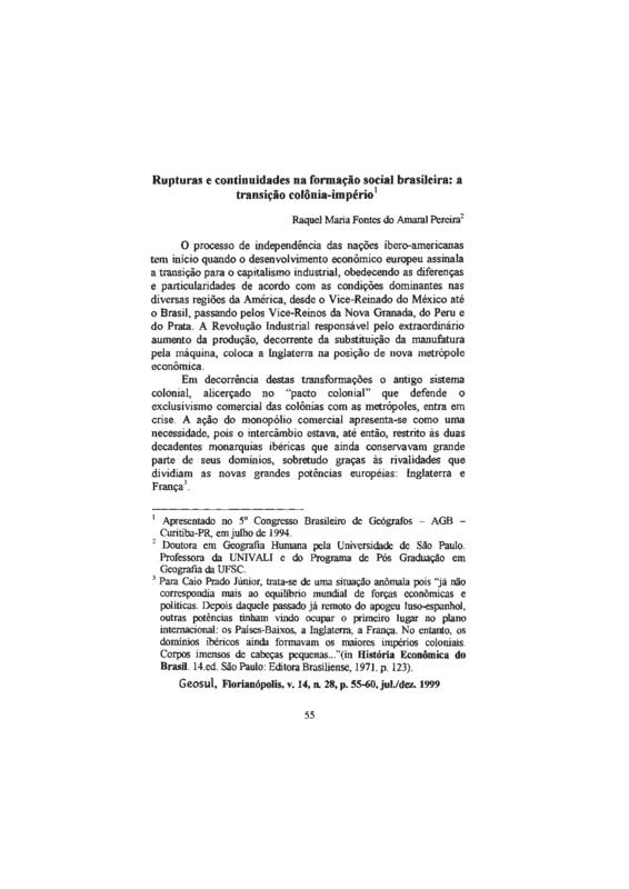 Rupturas e Continuidades na Formação Social Brasileira: a Transição Colônia-Império