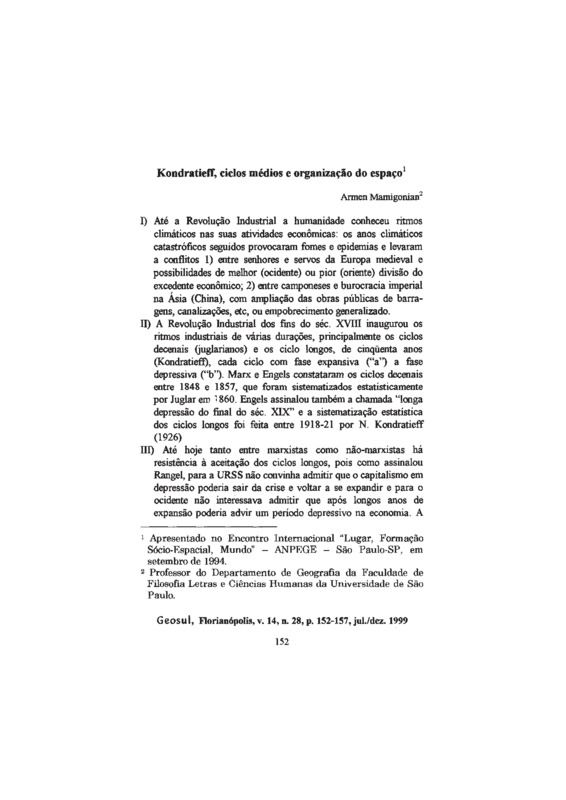 - Kondratieff, Ciclos Medios e Organizacão do Espaço