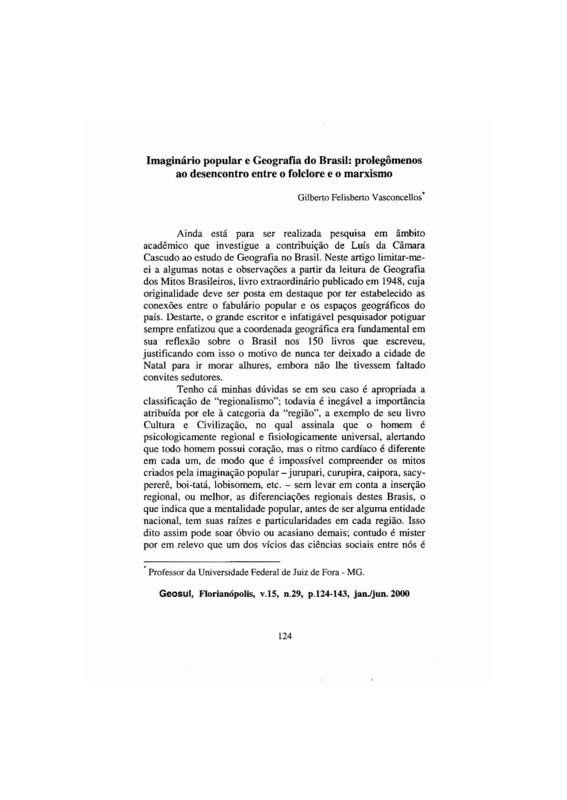 Imaginário popular e Geografia do Brasil: prolegômenos ao desencontro entre o folclore e o marxismo