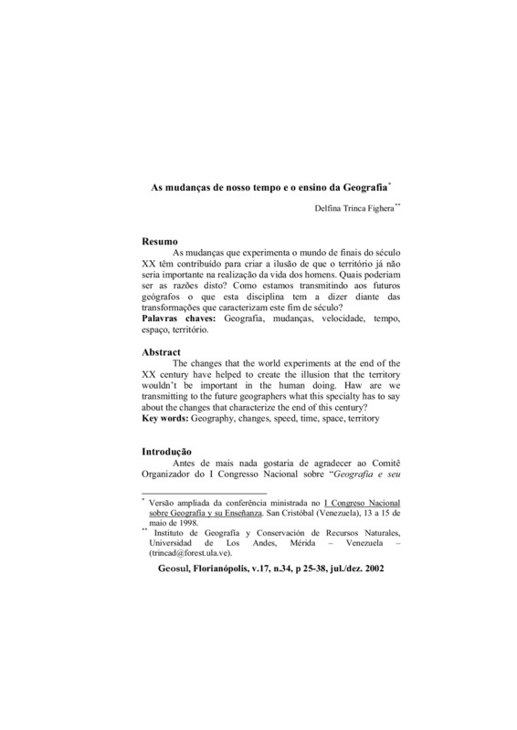 As mudanças que experimenta o mundo de finais do séculoXX têm contribuído para criar a ilusão de que o território já nãoseria importante na realização da vida dos homens. Quais poderiamser as razões disto? Como estamos transmitindo aos futurosgeógrafos o que esta disciplina tem a dizer diante dastransformações que caracterizam este fim de século?