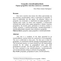 Geografia e interdisciplinaridade. Espaço geográfico: interface natureza e sociedade