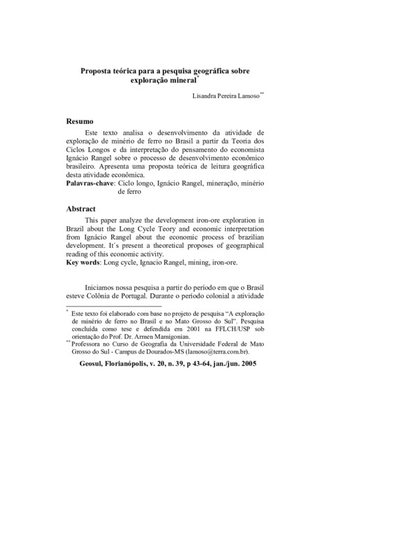 Proposta teórica para a pesquisa geográfica sobre exploração mineral