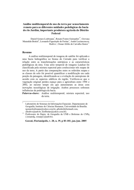 Análise multitemporal do uso da terra por sensoriamento remoto para as diferentes unidades pedológicas da bacia do rio Jardim, importante produtora agrícola do Distrito Federal