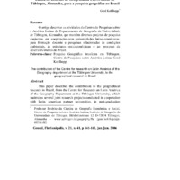 A contribuição do Centro de Pesquisas sobre a América Latina do Instituto de Geografia da Universidade de Tübingen, Alemanha, para a pesquisa geográfica no Brasil