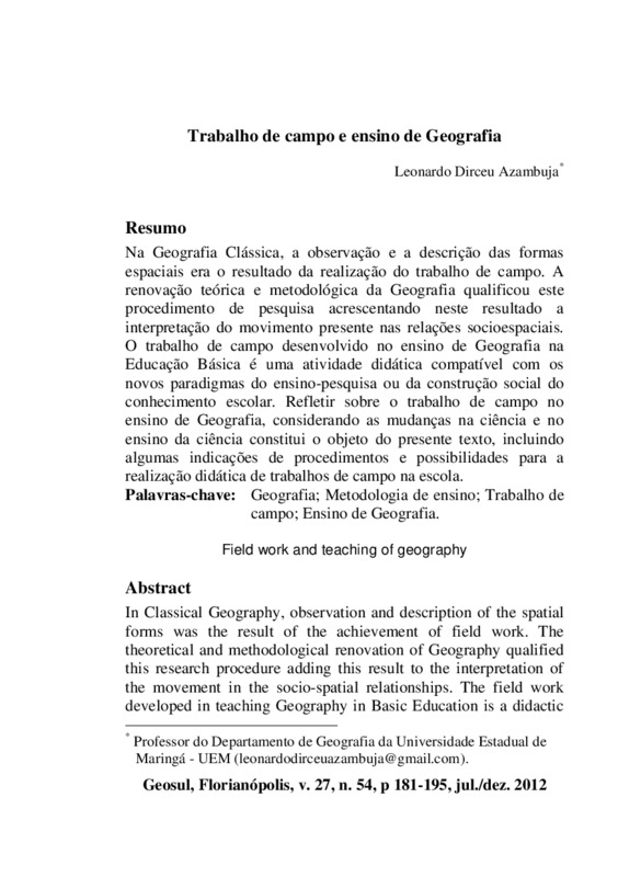 Trabalho de campo e ensino de Geografia