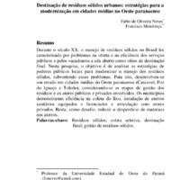 Destinação de resíduos sólidos urbanos: estratégias para a modernização em cidades médias no oeste paranaense