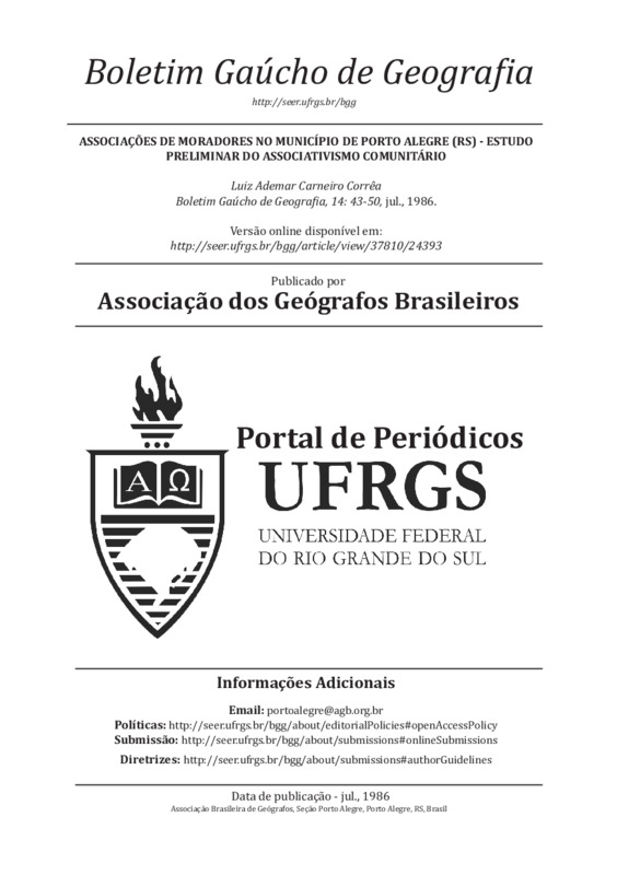 Associações de moradores no município de Porto Alegre (RS) - estudo preliminar do associativismo comunitário