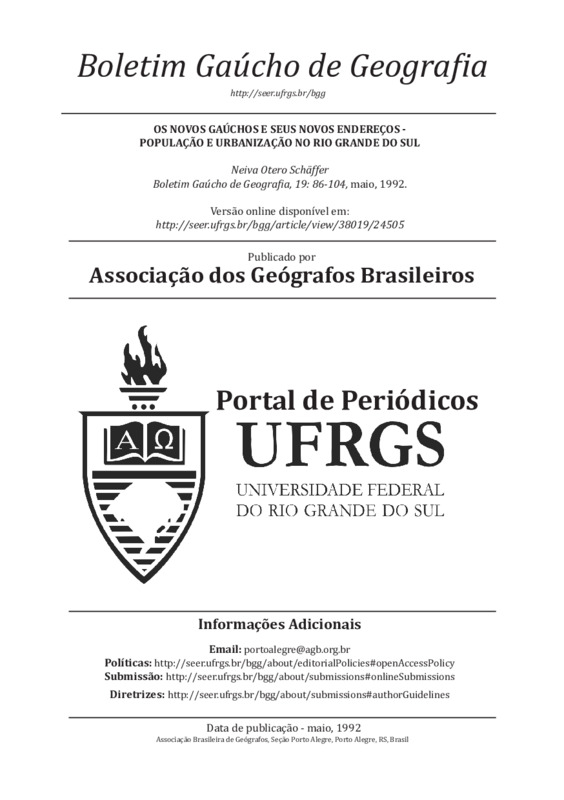 Os novos gaúchos e seus novos endereços - população e urbanização no Rio Grande do Sul
