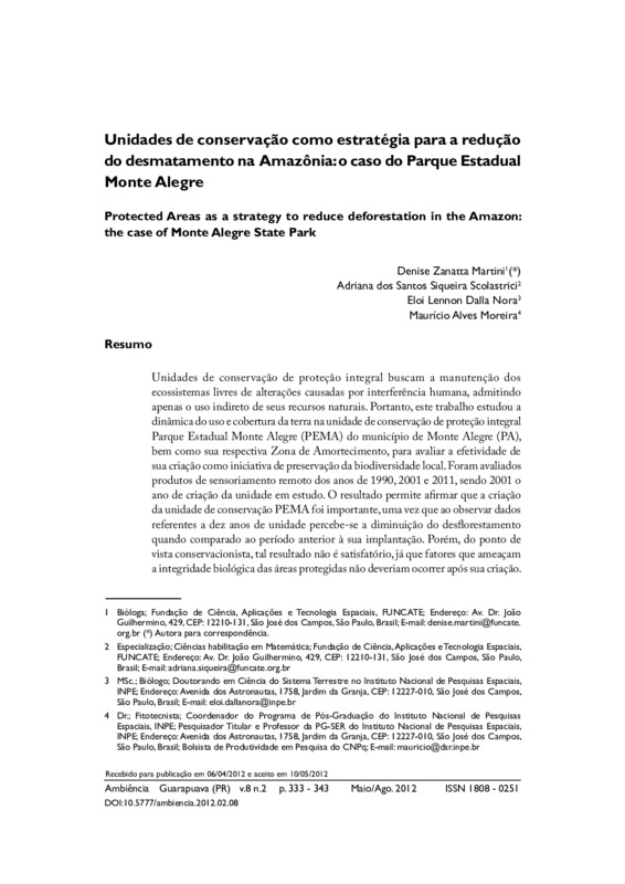 Unidades de conservação como estratégia para a redução do desmatamento na Amazônia: o caso do Parque Estadual Monte Alegre Protected Areas as a strategy to reduce deforestation in the Amazon: the case of Monte Alegre State Park