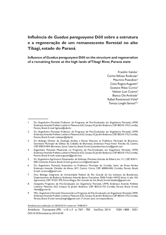 Influência de Guadua paraguayana Döll sobre a estrutura e a regeneração de um remanescente florestal no alto Tibagi, estado do Paraná Influence of Guadua paraguayana Döll on the structure and regeneration of a remaining forest at the high