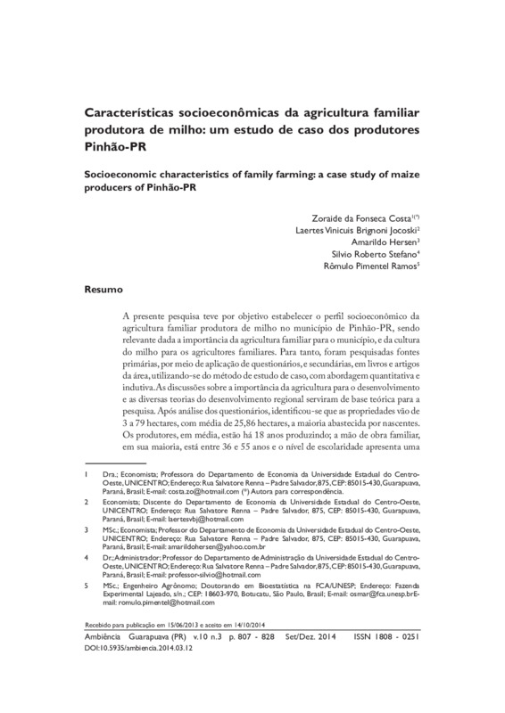 Características socioeconômicas da agricultura familiar produtora de milho: um estudo de caso dos produtores Pinhão-PR Socioeconomic characteristics of family farming: a case study of maize producers of Pinhão-PR