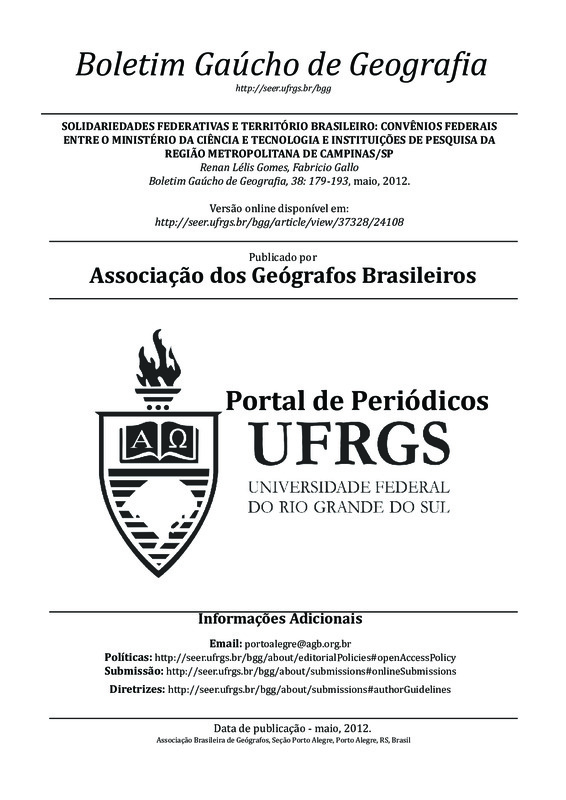O texto objetiva analisar uma das facetas do território brasileiro: a celebração de Convênios (transferências voluntárias de recursos) entre o Governo Federal e os municípios. Neste texto analisaremos os Convênios celebrados entre os municípios da Região Metropolitana de Campinas/SP e o Ministério de Ciência e Tecnologia, com o intuito de compreender a materialização dos recursos públicos no território. A organização federativa do país garante aos entes dessa federação as mesmas virtualidades legais, no entanto, o princípio constitucional da isonomia não é observado nas transferências voluntárias, pois as mesmas são, muitas vezes, resultado de negociações políticas.smas são, muitas vezes, resultado de negociações políticas.