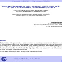 Transformações urbanas sob os efeitos dos processos de globalização: os casos de Vitória-ES-Brasil e de Tete-Moçambique-África