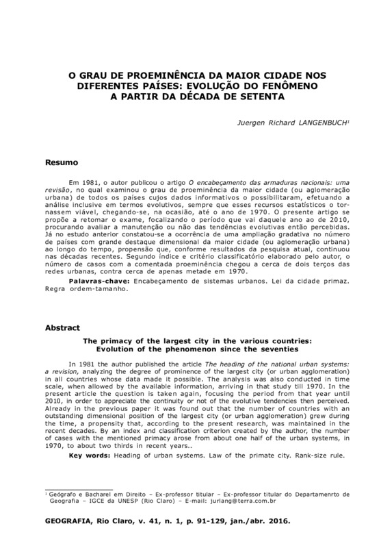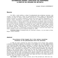 Em 1981, o autor publicou o artigo O encabeçamento das armaduras nacionais: uma revisão, no qual examinou o grau de proeminência da maior cidade (ou aglomeração urbana) de todos os países cujos dados informativos o possibilitaram, efetuando a análise inclusive em termos evolutivos, sempre que esses recursos estatísticos o tornassem viável, chegando-se, na ocasião, até o ano de 1970. O presente artigo se propõe a retomar o exame, focalizando o período que vai daquele ano ao de 2010, procurando avaliar a manutenção ou não das tendências evolutivas então percebidas. Já no estudo anterior constatou-se a ocorrência de uma ampliação gradativa no número de países com grande destaque dimensional da maior cidade (ou aglomeração urbana) ao longo do tempo, propensão que, conforme resultados da pesquisa atual, continuou nas décadas recentes. Segundo índice e critério classificatório elaborado pelo autor, o número de casos com a comentada proeminência chegou a cerca de dois terços das redes urbanas, contra cerca de apenas metade em 1970
