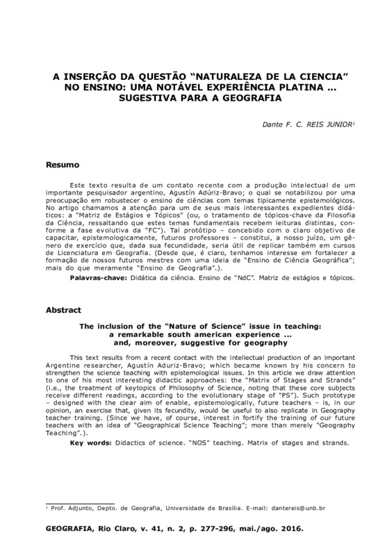 A INSERÇÃO DA QUESTÃO "NATURALEZA DE LA CIENCIA" NO ENSINO: UMA NOTÁVEL EXPERIÊNCIA PLATINA...SUGESTIVA PARA A GEOGRAFIA