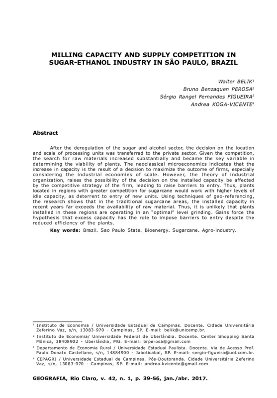 MILLING CAPACITY AND SUPPLY COMPETITION IN SUGAR-ETHANOL INDUSTRY IN SÃO PAULO, BRAZIL