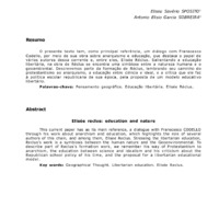 O presente texto tem, como principal referência, um diálogo com Franscesco Codello, por meio de sua obra sobre anarquismo e educação, que destaca o papel de vários autores dessa corrente e, entre eles, Elisée Réclus. Salientando a educação libertária, na obra de Réclus se encontra uma simbiose entre a natureza humana e o geoambiental. Descrevemos parte da formação de Réclus, lembrando seu caminho do protestantismo ao anarquismo, a educação entre ciência e ideal, e a crítica que ele faz à política escolar republicana de sua época, pela proposta de um modelo educativo libertário