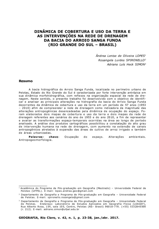 DINÂMICA DE COBERTURA E USO DA TERRA E AS INTERVENÇÕES NA REDE DE DRENAGEM DA BACIA DO ARROIO SANGA FUNDA (RIO GRANDE DO SUL BRASIL)