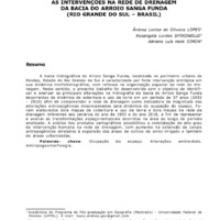 A bacia hidrográfica do Arroio Sanga Funda, localizada no perímetro urbano de Pelotas, Estado do Rio Grande do Sul é caracterizada por forte intervenção antrópica em sua dinâmica morfohidrográfica, com reflexos na organização espacial da rede de drenagem. Neste sentido, o presente trabalho foi desenvolvido com o objetivo de identificar e analisar as principais alterações na hidrografia da bacia do Arroio Sanga Funda decorrentes da dinâmica de cobertura e uso da terra em um período de 57 anos (1953 - 2010) afim de compreender a rede de drenagem como indicadora da magnitude das alterações antropogênicas desencadeadas pela dinâmica de ocupação do espaço. Foram elaborados dois mapas de cobertura e uso da terra e dois mapas da rede de drenagem referentes aos cenários do ano de 1953 e do ano 2010, a fim de representar e avaliar as transformações espaço-temporais ocorridas na área ao longo de período analisado. A análise dos produtos cartográficos possibilitou a constatação do alto grau de intervenção humana na rede de drenagem, com aumento na extensão de canais antropogênicos atrelados à expansão das áreas de cultivo de arroz irrigado e também de áreas urbanizadas.