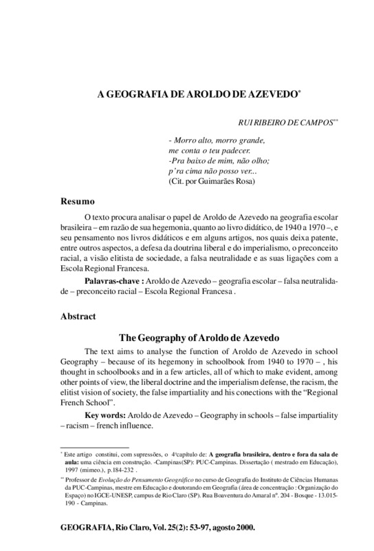 A GEOGRAFIA DE AROLDO DE AZEVEDO*