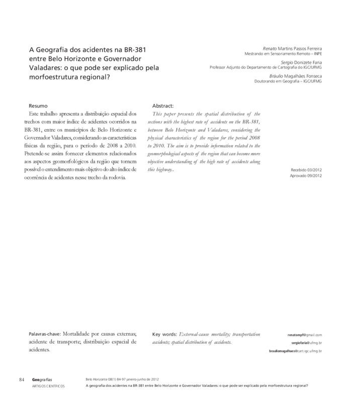 A Geografia dos acidentes na BR-381 entre Belo Horizonte e Governador Valadares: o que pode ser explicado pela morfoestrutura regional?