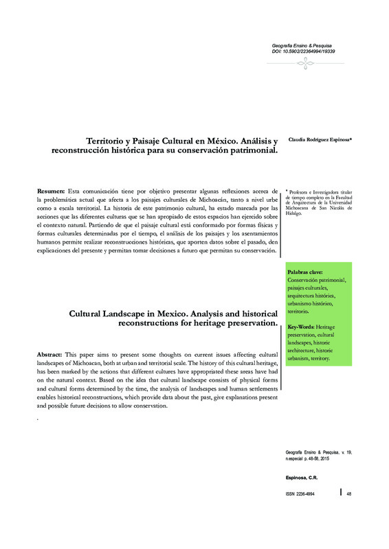 Territorio y Paisaje Cultural en México. Análisis y reconstrucción histórica para su conservación patrimonial