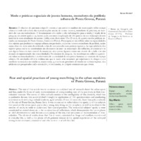 O objetivo do presente artigo foi construir um caminho analítico de investigação sobre espaço urbano e medo sob o foco das representações sociais de jovens homens, moradores de periferia, no exercício de suas masculinidades. O levantamento dos dados e das informações para a inteligibilidade desta pesquisa, de caráter qualitativa, foi realizado por meio da aplicação de 346 questionários e realização de sete entrevistas com estudantes de ensino médio, com idade entre 15 e 23 anos, de quatro escolas públicas sediadas no município de Ponta Grossa, Estado do Paraná. Preocupou-se em refletir sobre as espacialidades dos sujeitos que produzem o espaço urbano, em particular, os jovens homens moradores de periferia, assim como observar as tensões da realidade, a fim de compreender suas práticas espaciais. As espacialidades dos sujeitos pesquisados se constituíram em elementos centrais na construção das reflexões, evidenciando-se que alguns locais da área central do município não apenas figuram como um recorte da cidade, eles são espaços de representação das masculinidades. No decurso da pesquisa, fez-se esforço em refletir e questionar sobre as masculinidades e os elementos de vulnerabilidade dos jovens homens no contexto do espaço urbano. Os resultados obtidos evidenciam que o medo está associado principalmente às drogas e aos conflitos vivenciados no cotidiano, assim como, que os locais geradores de tensão na vivência espacial dos adolescentes pesquisados estão associados, sobremaneira, ao próprio contexto em que vivem. Palavras-chave: espaço urbano; representações sociais; medo; masculinidades. DOI: 10.5902/2236499415766