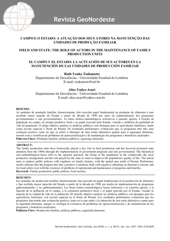 CAMPO E O ESTADO: A ATUAÇÃO DOS SEUS ATORES NA MANUTENÇÃO DAS UNIDADES DE PRODUÇÃO FAMILIAR (FIELD AND STATE: THE ROLE OF ACTORS IN THE MAINTENANCE OF FAMILY PRODUCTION UNITS)