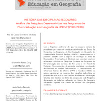 HISTÓRIA DAS DISCIPLINAS ESCOLARES: análise das pesquisas desenvolvidas nos Programas de Pós-Graduação em Geografia da UNESP (2000-2010)