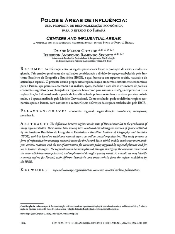 Polos e áreas de influência: uma proposta de regionalização econômica para o estado do Paraná | Centers and influential areas: a proposal for the economic regionalization in the State of Paraná, Brazil