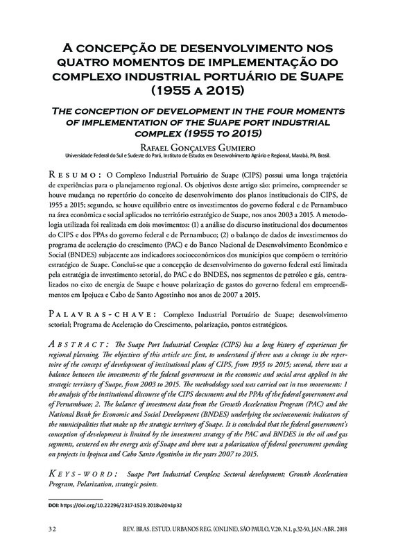 A concepção de desenvolvimento nos quatro momentos de implementação do complexo industrial portuário de Suape (1955 a 2015) | The concept of development in the four moments of implementing the Suape port-industrial complex (1955 to 2015)