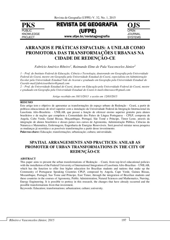 Este artigo tem o objetivo de apresentar as transformações do espaço urbano de Redenção - Ceará, a partir de políticas educacionais de nível superior com a instalação da Universidade Federal da Integração Internacional da Lusofonia Afro-Brasileira – UNILAB, que possui a função de oferecer ensino superior gratuito para alunos brasileiros e de nações que compõem a Comunidade dos Países de Língua Portuguesa – CPLP, composta de Angola, Cabo Verde, Guiné Bissau, Moçambique, Portugal, São Tomé e Príncipe, Timor Leste, através da integração de alunos brasileiros e desses países nos cursos de Agronomia, Administração Pública, Ciências da Natureza e Matemática, Enfermagem, Engenharia de Energias Renováveis. Será possível retratar nessa pesquisa as mudanças já ocorridas e as possíveis transformações a partir desse investimento.
